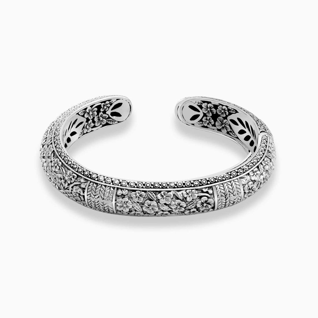 Artisan Floral Sterling Silver Bangle Bracelet