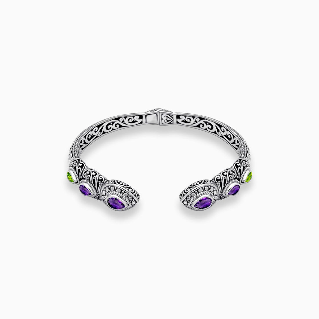 Color Spark: Amethyst & Peridot Sterling Silver Bangle Bracelet