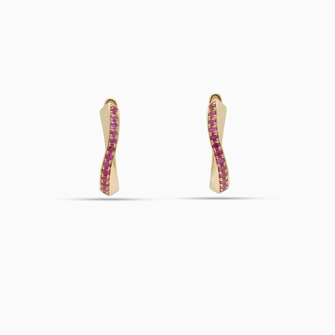 Pink Sapphire Wavy Hoop Earrings in 18K Rose Gold