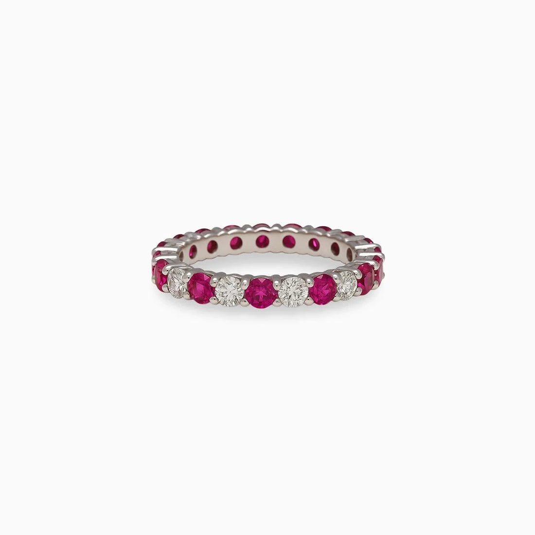 Pink Sapphire & Diamond Band in 18K White Gold