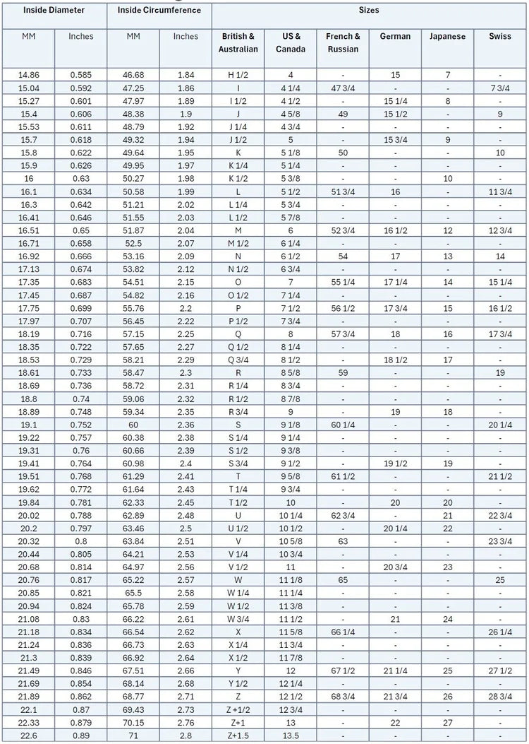 STANDARD BANGLE SIZE CHART (INNER DIAMETER)